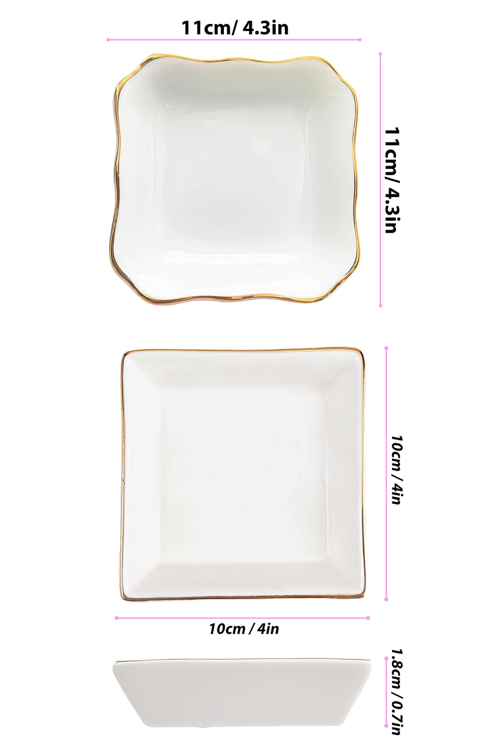 Stylish & Elegant: Crafted from high-quality ceramic, this jewelry dish features a full-print design with a luxurious gold rim, adding a touch of sophistication to your space.