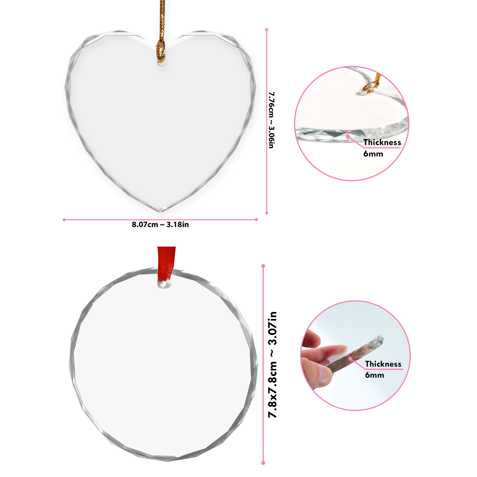 Exemplary Quality and Endurance: Printed on one side with a thickness of 6mm, the glass ornament boasts durability. Its surface is adorned with high-quality and vibrant color printing. The designs are permanently pressed onto the ornament, guaranteeing an enduring image that will not peel off or fade over time.